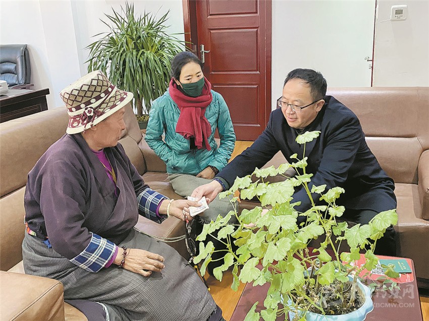 本網(wǎng)訊 近日,白玉縣贈科鄉(xiāng)定布村黨員活動室里人聲鼎沸,熱鬧非凡,縣農(nóng)發(fā)公司正在這里發(fā)放土地流轉(zhuǎn)費和助農(nóng)增收務工費。