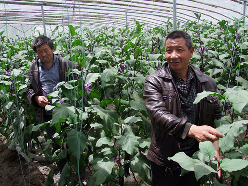楊利平是咱威村的支部書記,他放棄在冷磧鎮(zhèn)生意紅火的摩托車行,通過盛煌公司的技術指導,他投資30萬元建設了7個普通蔬菜大棚,請了一名工人幫助管理。“我的錯季蔬菜已經(jīng)見到效益了,四季豆批發(fā)價每市斤就是4.5元。青椒、茄子也即將上市。如果按照傳統(tǒng)種植,這些蔬菜起碼要等到7、8月份。”楊利平高興地說,多虧了盛煌公司的技術指導,有什么不懂的,他可以隨時過來請教。公司從種苗到管理都會向他提供全程服務。