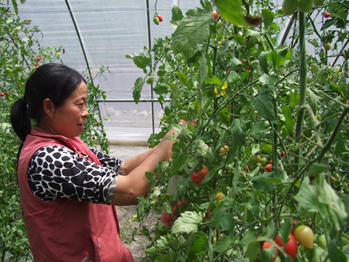 “盛煌公司來這里開展蔬菜大棚建設以后,每畝每年按照1500元的標準支付了村民的土地流轉租金。我是外地嫁到這里來的,沒有土地,他們雇傭我來務工,每個月按照1800元支付我的工資,每個月還可以休息兩天。”正在大棚里摘水果番茄的村民陳國蓉知足地說。