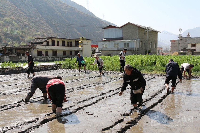 3月18日,在瀘定縣德威鎮(zhèn)河壩村的數(shù)塊農(nóng)田里,熱熱鬧鬧的水稻育苗勞作正在進行,浸稻谷、打田地、撒種子、架溫棚……田地里忙碌著村民們勞作的身影,一塊數(shù)畝的農(nóng)田不到半個小時就完成了從平田到架設(shè)溫棚的春耕育苗全過程。