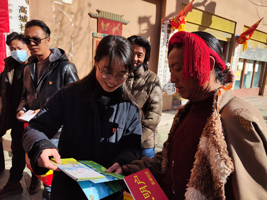 理塘縣委宣傳部黨支部準(zhǔn)備了內(nèi)容豐富、通俗易懂的宣傳資料,“黨的二十大精神”宣傳折頁、《講文明樹新風(fēng)》原創(chuàng)藏漢雙語公益漫畫、《文明城市宣傳手冊》、“網(wǎng)絡(luò)安全與網(wǎng)絡(luò)文明”宣傳冊、社會主義核心價值觀宣傳海報、防震減災(zāi)宣傳單等一系列資料整整齊齊擺放在咨詢臺上,供過往群眾取閱。