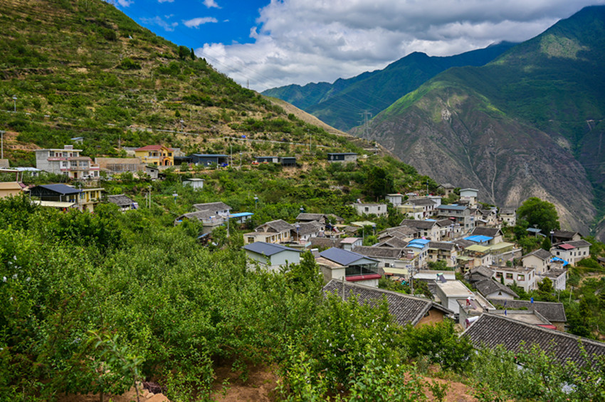 仲夏時(shí)節(jié),漫步在藍(lán)天白云下的黃草坪村,一個(gè)個(gè)雞蛋大小的蘋(píng)果、枇杷掛滿(mǎn)枝頭,撲面而來(lái)的果香味沁人心田。放眼望去,山谷間一團(tuán)團(tuán)云霧纏繞在大山峭壁間,山腳下,大渡河猶如一條青色的綢緞,歡騰的河水正述說(shuō)如今黃草坪村的幸福生活。
