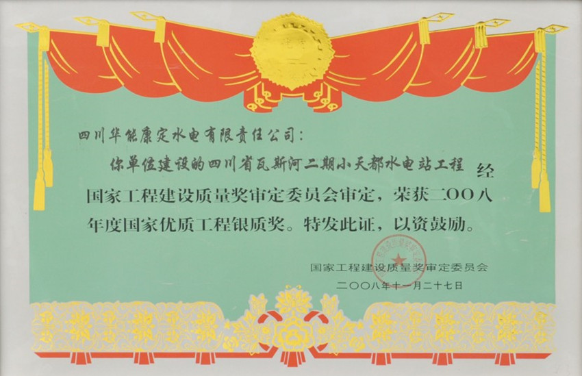 冷竹關(guān)水電站和小天都電站均獲得四川省建設(shè)工程最高質(zhì)量獎(jiǎng)“天府杯”金獎(jiǎng),接受了朱镕基總理、第十一世班禪等黨和國(guó)家領(lǐng)導(dǎo)人多次視察。2006年11月,“康瀘電網(wǎng)”與小天都電站35千伏系統(tǒng)并網(wǎng)成功,結(jié)束了全省最后一個(gè)地市州未并入主網(wǎng)而“孤網(wǎng)運(yùn)行”的歷史。小天都電站還是四川省首個(gè)獲得“國(guó)家優(yōu)質(zhì)工程獎(jiǎng)”的水電站。