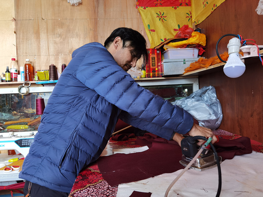 “噠噠噠,噠噠噠……”近日,筆者走進(jìn)白玉縣阿察鎮(zhèn)昌拖村村集體經(jīng)濟(jì)商品房,映入眼簾的是一位正踩著縫紉機(jī)踏板穿針引線,縫補(bǔ)衣服的租客。他叫白瑪,是德格縣人,因妻子是該村村民,結(jié)婚后便在此居住,2020年村里修建了村集體經(jīng)濟(jì)商品房后,夫妻倆經(jīng)過(guò)商量后決定租用進(jìn)行創(chuàng)業(yè)。