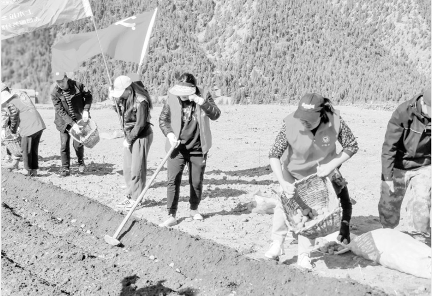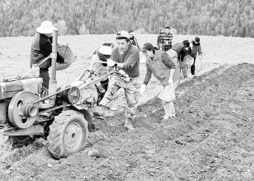 本網(wǎng)訊 “手揚起來,肥料要撒均勻,種子播種的要注意間距和密度……”4月11日,在理塘縣上木拉鄉(xiāng)增德村農(nóng)戶地里,有經(jīng)驗的村干部正細致地給鄉(xiāng)上志愿者們傳授著馬鈴薯、青稞播種知識。