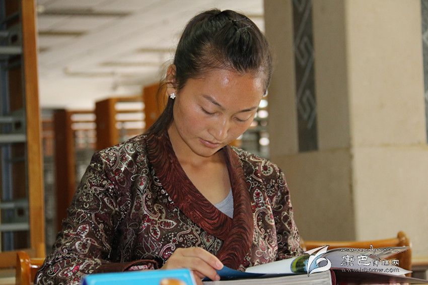 西南民大旅游管理專業(yè)學(xué)生尼瑪錯在圖書室查閱資料。