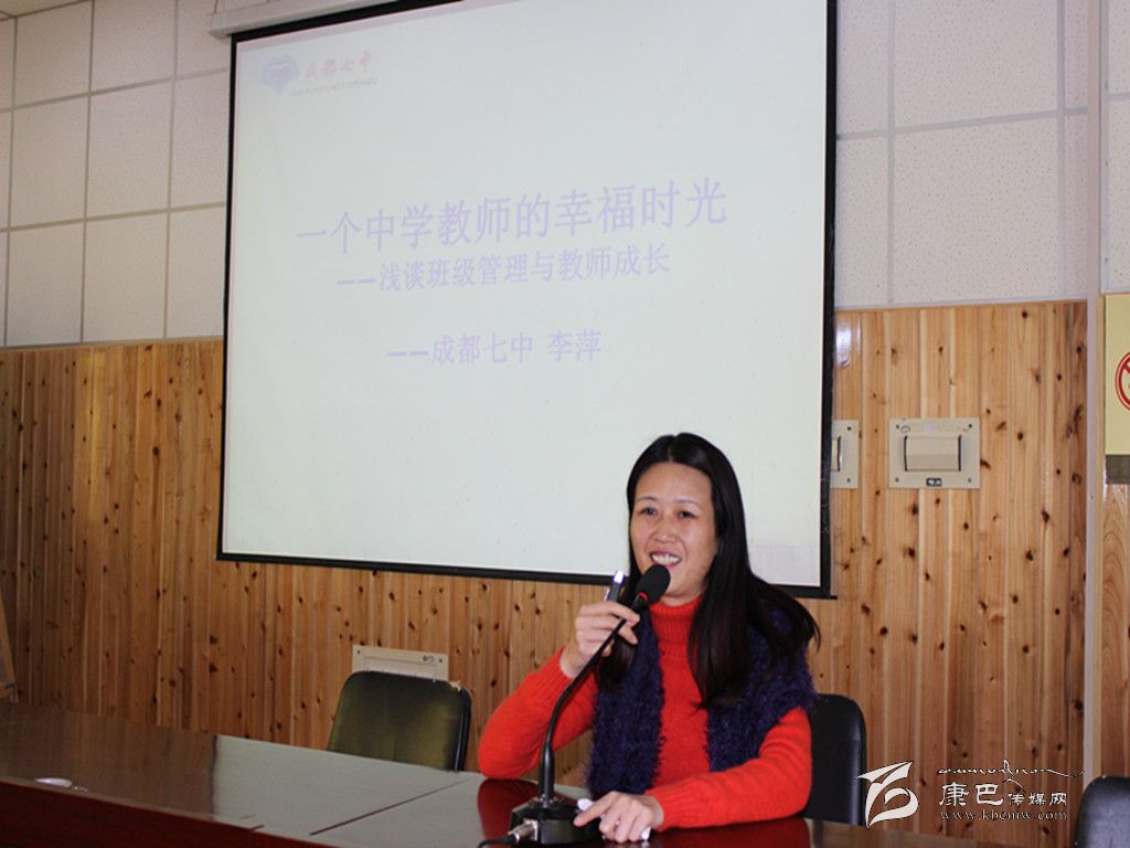 活動中,成都七中網(wǎng)校教師分別與康定中學網(wǎng)課班(云班)教師、學生開展了交流、觀摩教學等活動。成都七中優(yōu)秀政治教師、班主任李萍還為全校教師作了一堂題為《一個中學教師的幸福時光──淺談班級管理與教師成長》的專題講座。講座中,李萍老師以米歇爾訪問七中以及旅美感受為楔子,結合自己的教育經(jīng)驗、親身經(jīng)歷、人生閱歷、工作所得,對班級管理及教師成長進行了深入淺出的詮釋,讓全體聽課教師普遍感覺受益非淺。