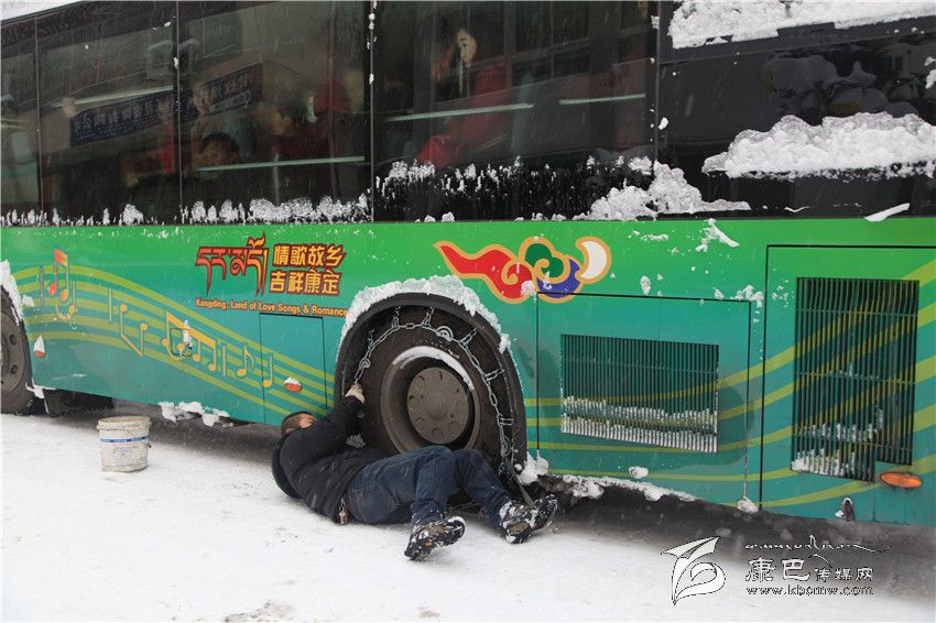 早上8點(diǎn),正值上班高峰期。記者發(fā)現(xiàn)街道上的私家車(chē)比以往少了許多,公交車(chē)上則人滿為患。在州武警招待所附近記者發(fā)現(xiàn),為了應(yīng)對(duì)積雪,過(guò)往的車(chē)輛都不得不掛上防滑鏈小心行駛。在現(xiàn)場(chǎng),一輛有防滑鏈的公交車(chē)仍然在打滑。見(jiàn)到這一情景,另一輛公交車(chē)不得不停在康定市東大街小學(xué)后面的街道上掛防滑鏈條。車(chē)后的人行道上,一位叫志瑪?shù)沫h(huán)衛(wèi)工人正在費(fèi)力的清理積雪。她告訴記者,早上6點(diǎn)過(guò)鐘她就上街清雪了,但由于積雪太厚,兩個(gè)多小時(shí)的時(shí)間才挖出一段不到500米的“雪路”。在與她相距100米左右的地方,有一群年輕人邊清理積雪、邊打雪仗,還順便堆起了一個(gè)大雪人。在康定將軍橋農(nóng)貿(mào)市場(chǎng),菜販們照常在搬運(yùn)蔬菜,一輛川T牌照的小貨車(chē)則停在街邊,車(chē)上滿是新鮮蔬菜,看來(lái)這場(chǎng)雪對(duì)他們的影響并不是很大。市場(chǎng)外的公交車(chē)候車(chē)點(diǎn),候車(chē)的人們排起了長(zhǎng)龍。
