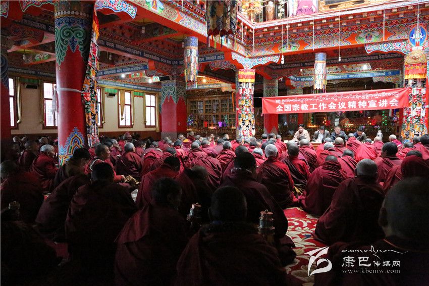 “中央和省委非常重視支持藏區(qū)經(jīng)濟(jì)社會(huì)發(fā)展和長治久安、非常關(guān)心關(guān)愛寺廟建設(shè)及其僧尼生活,州委更是在抓好發(fā)展、民生、穩(wěn)定‘三件大事’上下足了功夫,在惠寺惠僧上使足了干勁。‘十二五’以來,州上全力爭取落實(shí)了中央寺廟水、電、路等基礎(chǔ)設(shè)施建設(shè)資金1億多元,省級(jí)和州安排危房維修和專項(xiàng)資金1500余萬元, 2014年還專項(xiàng)為五明佛學(xué)院安排資金100萬元;各縣財(cái)政投入寺廟基礎(chǔ)設(shè)施資金共1.1億元,在267座寺廟開展了路、水、電、通訊、廣播電視‘五通’及危房建設(shè)。這些真金白銀的投入,帶來的是全州藏傳佛教寺廟基礎(chǔ)條件的大幅改善。面對(duì)寺廟和僧尼學(xué)習(xí)生活條件的日臻完善,難道我們不知道恩從何來嗎?‘十二五’以來,全州累計(jì)保障困難僧尼14969人,政府資助困難僧尼參加城鎮(zhèn)醫(yī)保、新農(nóng)合39014人,納入基本醫(yī)療保險(xiǎn)38989人、養(yǎng)老保險(xiǎn)12697人,完成52459名僧尼健康信息調(diào)查,3138名宗教場所負(fù)責(zé)人及成員享受工作補(bǔ)貼。這些看得見、摸得著的實(shí)惠,帶來的是廣大僧尼后顧之憂的迅即消除。面對(duì)這些無微不至的關(guān)愛,難道我們不知道恩向誰報(bào)嗎?今年是‘十三五’的開局之年,州委十屆八次全會(huì)確立了‘一個(gè)目標(biāo)、兩個(gè)關(guān)鍵、三件大事、六大戰(zhàn)略’總體工作格局,提出了全面建設(shè)美麗生態(tài)和諧小康甘孜的宏偉目標(biāo),我們廣大僧尼也將與全州農(nóng)牧民群眾一起精準(zhǔn)脫貧、致富奔康,住上好房子、過上好日子、養(yǎng)成好習(xí)慣、形成好風(fēng)氣。面對(duì)來之不易的幸福生活和更加美好的發(fā)展前景,難道我們不知道在感恩中奮進(jìn)、在奮進(jìn)中感恩嗎?……”以小見大的宣講、以事說理的宣傳、以情感人的對(duì)話,使得宣講內(nèi)容都成了僧尼們愛聽的大白話、通俗話和貼心話。