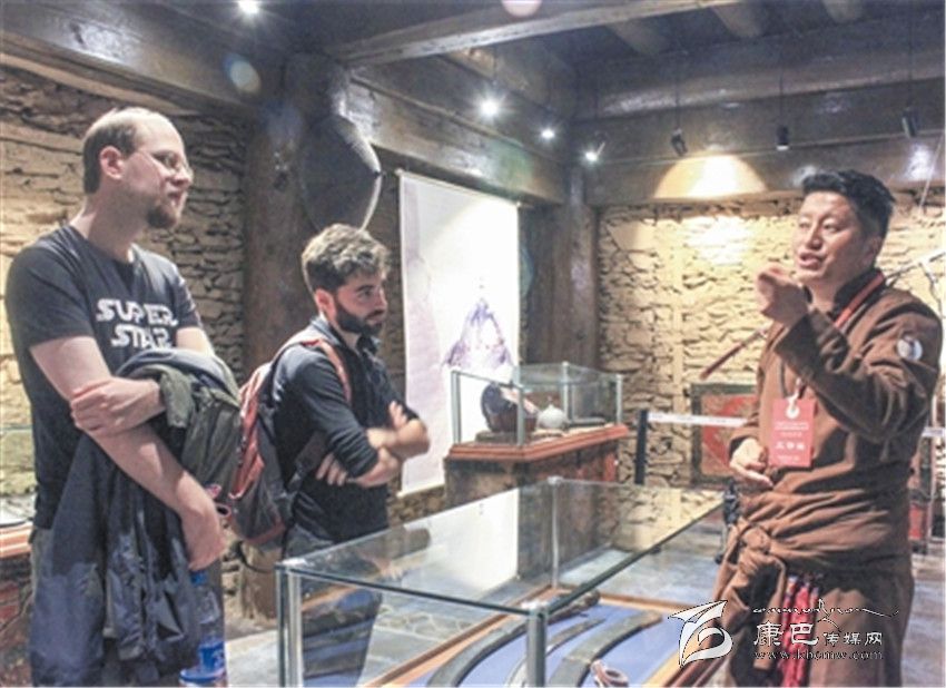 來自美國的山姆和李邁(中文名)慕名前來參觀,參觀全程他倆始終仔細聆聽、認真觀賞,還不時提出自己的疑問。“今天最感興趣的就是鞍前馬后展廳,我覺得這個廳最能展現康巴人骨子里的豪邁之情。”據李邁講,他來中國多年,一直從事話劇導演工作,對康巴文化比較感興趣,今天的游覽直觀的展現了康巴文化的精髓和康巴地區(qū)的人文內涵,為他打開了康巴文化的一扇窗。