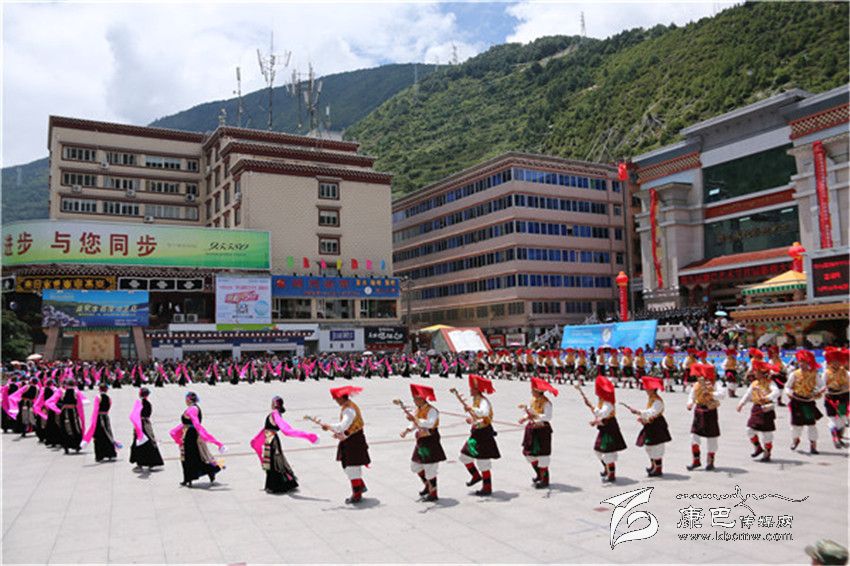 表演在巴塘縣舞之中拉開帷幕,上百名身著盛裝的男女演員用歡快的舞步、飄揚的云袖向康定市民和四方來客展現(xiàn)了“弦子之鄉(xiāng)”的淳樸熱情和如畫風光。演員們精彩、投入的表演贏得了現(xiàn)場觀眾的陣陣好評。分別表演完各自的縣舞之后,三縣人馬一同跳起了甘孜州州舞,在熟悉的《康定情歌》旋律之中,男男女女、老老少少300余人盡情舞蹈,時而大步流星、時而小心翼翼、時而熱情奔放、時而掩面含羞,黑白、紅黃、藍綠各色服裝隨著音樂節(jié)拍交相輝映,繪制成一幅團結友愛的和諧圖景。