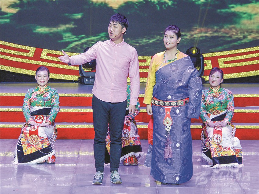歌曲聯(lián)唱《百花爭艷》,是演出中第一個讓觀眾們大呼過癮的節(jié)目,年僅5歲的澤仁拉姆用一首藏族原生態(tài)歌曲《故鄉(xiāng)》,讓全場觀眾耳目一新。緊隨而來的藏族山歌《家鄉(xiāng)美》、漢族歌曲《和諧大家園》、回族歌曲《花兒與少年》、彝族歌曲《 尼雨尼杰》將音樂的魅力逐級顯現(xiàn),最后在經(jīng)典歌曲《愛我中華》中急速升華。6首歌曲風(fēng)格各異,卻又一氣呵成,不僅集中展示了我州藏、漢、回、彝四個民族的藝術(shù)風(fēng)采,還生動展現(xiàn)了我州各族人民其樂融融、團(tuán)結(jié)進(jìn)步的和諧面貌。