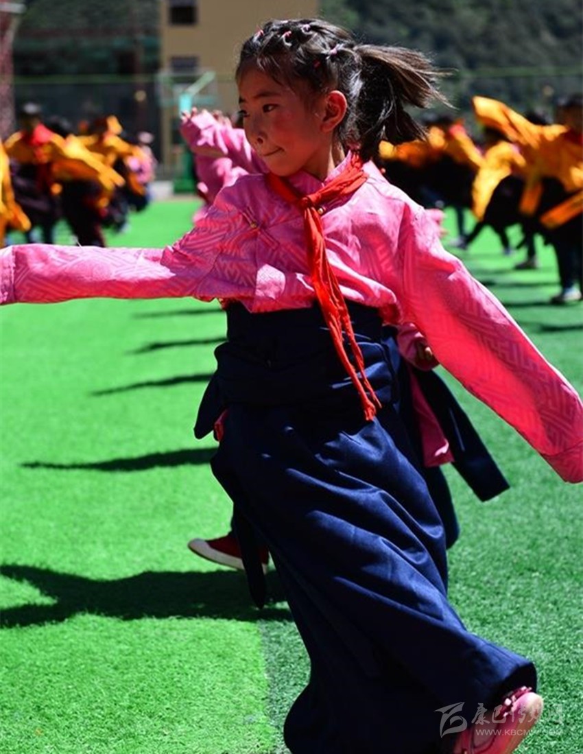 雅江縣呷拉鎮(zhèn)片區(qū)寄宿制操場(chǎng)上,身著民族服飾的學(xué)生們跳課間舞。