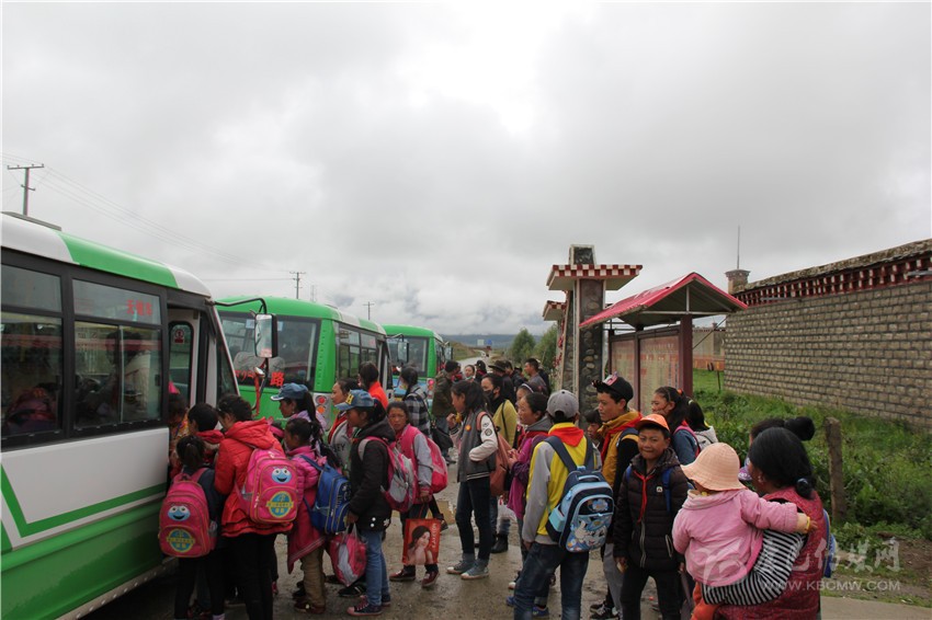 學(xué)生排隊乘公交。