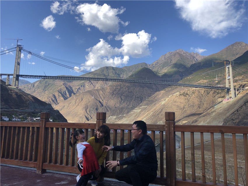 2014年大橋開(kāi)建,柏國(guó)勝夫婦就把家安在了大橋旁的工地,把辛勤汗水融入這片土地,如今3歲的小孩就在當(dāng)?shù)赜變簣@讀書,成為地道的“瀘定人”。