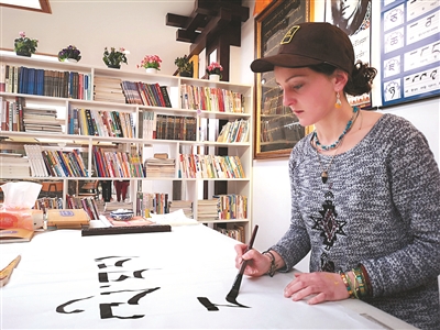 25歲的法國(guó)女孩寶林(中文名),環(huán)亞洲旅行剛到中國(guó)沒(méi)多久,在成都待了一星期后,想更多地探索藏文化的奧秘,于是來(lái)到理塘。在這個(gè)城市的任何角落都能感受到藏文化氣息的她,通過(guò)三完小藏族教師益西的介紹,4月19日來(lái)到理塘縣電子商務(wù)雙創(chuàng)孵化中心“扎納民族文化傳承基地”參觀,看到藏文書(shū)法那么美麗,就動(dòng)了參加“民族書(shū)法免費(fèi)培訓(xùn)班”的念頭。