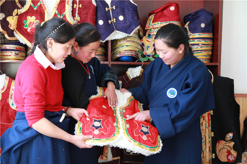 色達牧民服裝加工成為增收產(chǎn)業(yè)。 本網(wǎng)記者 田杰 攝