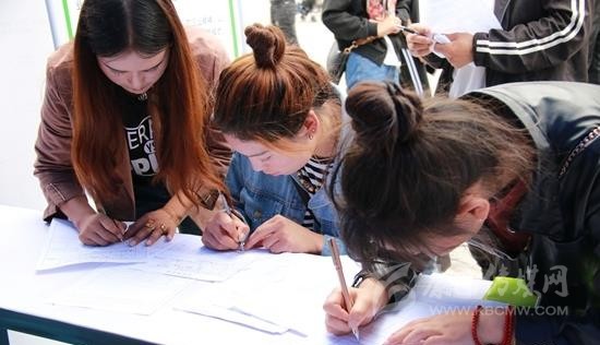 在現(xiàn)場,一名手拿“得榮縣人社局”牌子的年輕人引起了記者的注意?!拔沂堑脴s縣人才交流和就業(yè)服務(wù)局的一名工作人員,這次我們縣上有20余人報名,大都是剛畢業(yè)的學(xué)生,但由于路途遙遠(yuǎn)等原因,今天只來了12人,我是來給他們帶隊(duì)的,希望功夫不負(fù)有心人,他們都能應(yīng)聘到自己心儀的崗位?!边@名叫徐懿的年輕人告訴記者。