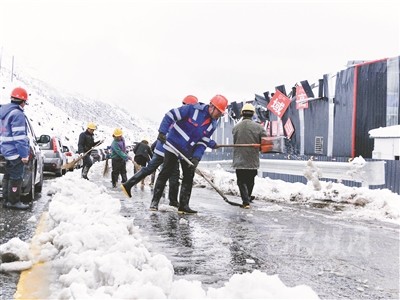 9月30日下午,康定折多山突降大雪,導(dǎo)致路面積雪濕滑,甘孜警方在指揮中心、派出所、景區(qū)、路口、卡點、牧場等地設(shè)點執(zhí)勤,并對部分路段實行交通管制。同時,以“保秩序、保暢通、保安全”為總目標(biāo),全警動員,全力以赴,用心、用智、用力,采取超常措施,全力做好黃金周期間交通管理工作,以安全有序的交通秩序、良好的執(zhí)勤風(fēng)貌,確保黃金周期間道路交通安全可控。