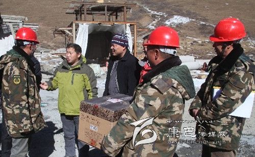 為打好今年交通攻堅(jiān)大決戰(zhàn),我州所有在建公路隧道冬季不停工,部分工程技術(shù)人員和民工將放棄春節(jié)與家人團(tuán)聚。日前,受州委、州政府領(lǐng)導(dǎo)的委托,州政府副秘書(shū)長(zhǎng)、州交通協(xié)調(diào)辦主任高見(jiàn)在前往石渠走訪(fǎng)“親戚”途中,專(zhuān)程看望慰問(wèn)了國(guó)道317線(xiàn)雀兒山隧道和省道217線(xiàn)石馬路海子山隧道的工程技術(shù)人員和民工,并轉(zhuǎn)達(dá)了州委、州政府領(lǐng)導(dǎo)的親切問(wèn)候。圖為在海子隧道施工現(xiàn)場(chǎng)慰問(wèn)時(shí)的場(chǎng)景。(本網(wǎng)記者 攝影報(bào)道)