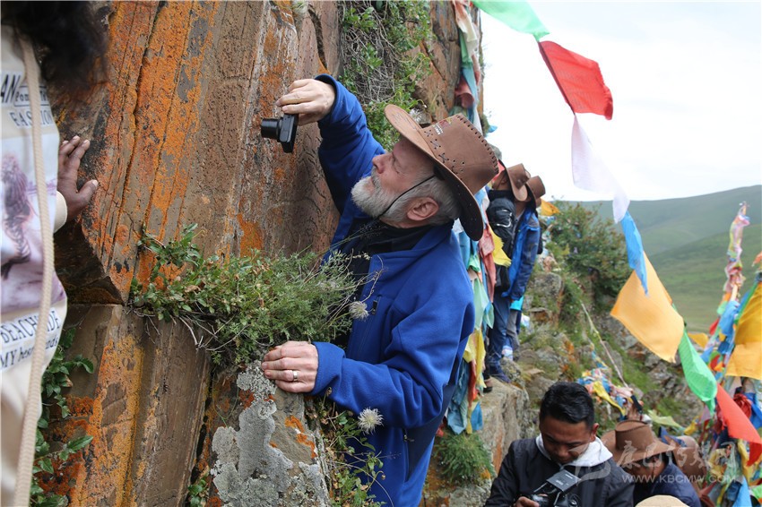 再次來到石渠的四川大學(xué)中國藏學(xué)研究所教授、中國巖畫學(xué)會(huì)副會(huì)長李永憲說,巖畫發(fā)掘?qū)ξ覀兘裉靵碚f不僅能提供圖像化、圖語化、圖形化的信息,它更是一種不可移動(dòng)的歷史,可以為我們了解早期藏民族生產(chǎn)生活及文化發(fā)展提供一些信息。早期居住在這里的人們用以石為主的形式來刻畫圖像、記載歷史、表現(xiàn)精神需求的這個(gè)習(xí)俗,所以作為石刻藝術(shù)王國的石渠在這點(diǎn)上非常有意義,它讓我們記住了一個(gè)民族的傳統(tǒng)的藝術(shù)形式是如何一脈相承的。