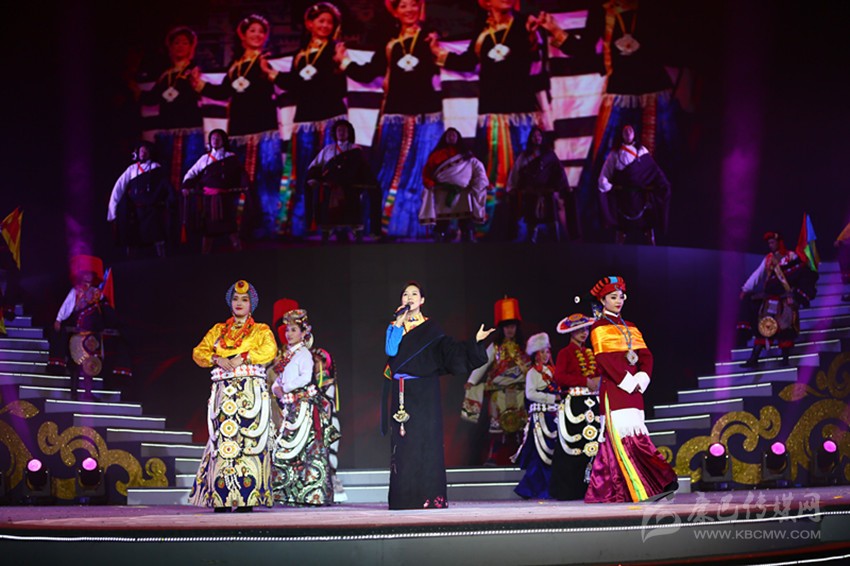 “額頭上寫滿祖先的故事,云彩托起歡笑,托起歡笑,胸膛是野心和愛(ài)的草原……”藏族歌手亞?wèn)|深情演唱曾風(fēng)行大江南北的《康巴漢子》將演出推向高潮。
