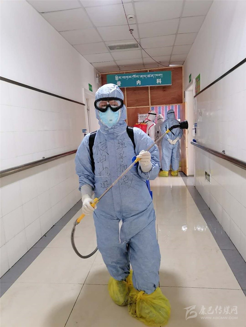 除了日常護(hù)理,根呷她姆的還要負(fù)責(zé)每日病房的消毒工作、垃圾清理以及清潔衛(wèi)生工作。“消毒工作格外重要,必須做到不漏一個(gè)死角?!备人窂?qiáng)忍著84消毒液刺激引起的嗆咳及生活垃圾引起的惡心發(fā)嘔,一絲不茍,任勞任怨,做好每一天的消殺清潔工作,讓病毒無(wú)處遁形。在同事面前她是護(hù)士長(zhǎng)、家長(zhǎng),在病人面前,她是護(hù)士、護(hù)工、清潔工、家屬、心理老師……根呷她姆每天在各種角色間轉(zhuǎn)換自如,不怕臟、不怕累、不怕苦,拼盡全力只為打贏(yíng)這場(chǎng)沒(méi)用硝煙的戰(zhàn)爭(zhēng)!