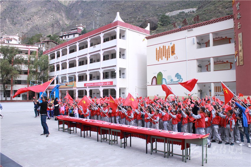 圖為丹巴縣川口寄宿制學校正在開展愛國主義教育活動。 丹宣 圖