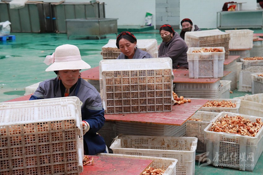 雅江縣就業(yè)扶貧基地工人正在分揀松茸。