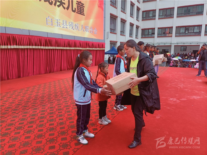 在“六一”兒童節(jié)之際,白玉縣殘聯(lián)前往城區(qū)各學(xué)校,與殘疾兒童親切交談,詳細(xì)了解孩子們學(xué)習(xí)、生活、家庭等方面的情況,鼓勵孩子們保持樂觀向上的心態(tài),積極面對生活,并為他們送去了價值6000余元的文具禮包、書包等節(jié)日禮物。圖為工作人員把禮物送到孩子們手上。 梁露 鄧珠吉村 攝影報道