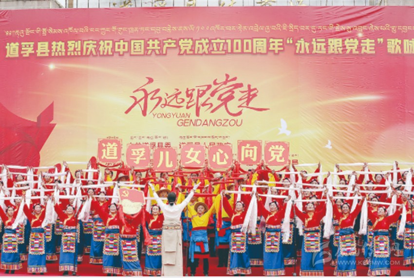 本網(wǎng)訊 “太陽(yáng)啊霞光萬(wàn)丈,雄鷹啊展翅飛翔,高原春光無(wú)限好,叫我怎能不歌唱……”6月26日,一曲《翻身農(nóng)奴把歌唱》的深情演唱,拉開了理塘縣慶祝中國(guó)共產(chǎn)黨成立100周年、2021年“高城兒女永遠(yuǎn)跟黨走”千人大合唱活動(dòng)的序幕。