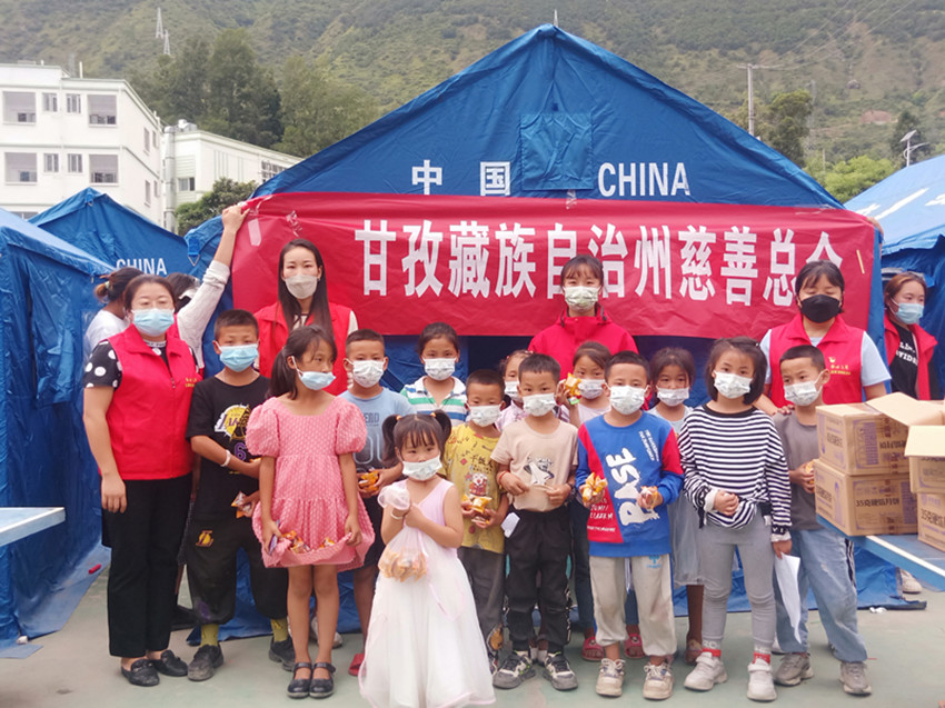 “謝謝姐姐,這月餅好甜,我可喜歡吃了?!迸d隆小學(xué)和貢嘎山小學(xué)安置點(diǎn)的孩子們開心地向志愿者們道謝。