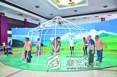 拾階而上,從序廳開始每走一步都會心生蓮花,首先映入眼簾的是兩堵巨大的LED顯示屏,屏幕上滾動播放著旅游宣傳片,清澈的藍天、綠綠的草地、農牧民們淳樸的笑意,眼睛開始跟著心靈旅行,而心的深處卻像長出了一對靈巧的翅膀,振振欲飛。西廳的照片墻,除去未經PS過的高原美景外,還展示了建州64年來,甘孜兒女向上奮發(fā)的新面貌。由西廳出來至正廳,在跨進門口的一剎那,便會被那頂蒙古包似的虎皮帳篷所吸住魂魄,流連、駐足、照相,它被人們傲慢地搭建在整個展廳最顯眼的位置,仿佛在箱底收藏了那么多年終于揚眉吐氣。北京人是有眼福的,很多在甘孜州本土生活了幾十年的人都是第一次親眼見到這頂帳篷,所有的人都為之驚嘆,并好奇這頂帳篷背后的故事。而關于這頂虎皮帳篷的記載并不多,這頂帳篷原是屬于理塘縣“雍若本”人的,而“雍若本”人舊時為理塘毛埡的土司階層,由于他們的祖先是從青海游牧過來的部落,到現在都保留有流動帳篷寺廟的風俗,據專家們推測如此奢華威嚴的一頂帳篷可能是流動的官府衙門。