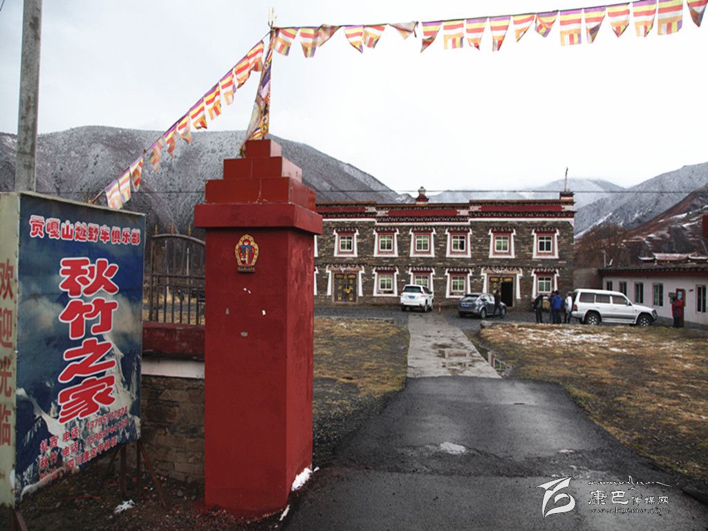 在距鄉(xiāng)政府不遠(yuǎn)的營(yíng)九路邊上,有一個(gè)“貢嘎山越野車俱樂(lè)部·秋竹之家”的燈箱廣告。在雪山的映襯下,這個(gè)不大的燈箱廣告顯得格外引人注目。步入“秋竹之家”的大門(mén),進(jìn)入眼簾的是一幢民族風(fēng)格濃郁的建筑,黑白紅三色相間的墻面,還沒(méi)有吐綠的院壩,所有的一切,都讓記者看不出這幢建筑與普通民居有什么不同的地方。