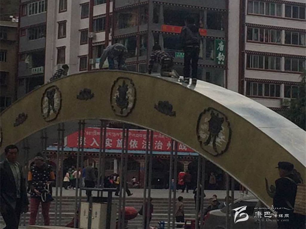 康定彩虹橋是上承式拱橋,橋面較為寬廣,橋上面的兩道彩虹式樣的弧形拱,除了承重,更多的功能便是裝飾??墒?1歲的扎西(化名),卻把這兩道弧形拱變成了集“攀巖”與“滑梯”多種功能于一體的游樂設施。在車輛穿梭的橋面上方,他和伙伴們艱難的克服阻力爬上“制高點”,又在無任何保護措施的情況下滑落到人行道上。一遍又一遍,孩子們在單調的重復中收獲著快樂。“這么危險,就沒有人管了?。?rdquo;“現在的娃娃怎么這么調皮?。?rdquo;路人對孩子們的危險動作表示出極大的擔心。