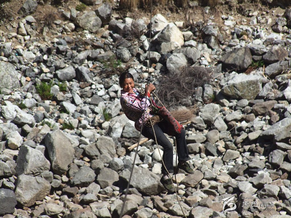 四郎澤姆已經(jīng)70多歲,每天拄著拐棍坐在墻根曬太陽(yáng)。陽(yáng)光下,她的一頭白發(fā)顯得明亮而干凈。四郎澤姆記得,一批批商人的鹽巴、茶葉、布匹從溜索上過(guò)去了,它們?nèi)チ四纠?、云南、拉薩和印度,卻沒(méi)有一粒鹽巴、一片茶葉、一絲布匹來(lái)到四郎翁姆手里。