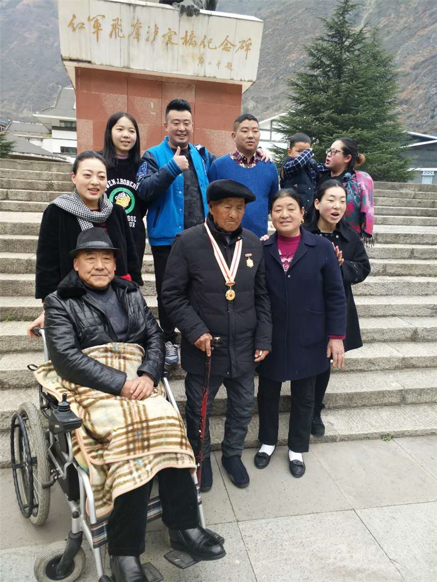 王瑞生專(zhuān)門(mén)帶領(lǐng)28名兒孫們前往瀘定橋紀(jì)念碑前合影,向他們講述紅軍長(zhǎng)征這段歷史。他說(shuō)得最多的一句話(huà)就是,“只有共產(chǎn)黨才能給我們帶來(lái)幸福生活,要不忘黨恩,回報(bào)社會(huì)?!崩先颂厥獾募t軍情結(jié)感染著兒孫們,老人傳承著紅軍精神,不忘初心,永遠(yuǎn)向前?!袄先松砩象w現(xiàn)的不向困難低頭,堅(jiān)強(qiáng)不屈的精神,正是當(dāng)前開(kāi)展精準(zhǔn)扶貧工作所需要倡導(dǎo)的精神,只要我們發(fā)揚(yáng)紅軍精神,就一定能夠過(guò)上好日子?!崩先说膶O子告訴記者,在老人的激勵(lì)下,現(xiàn)在家人昂揚(yáng)向上,幸福美滿(mǎn)。