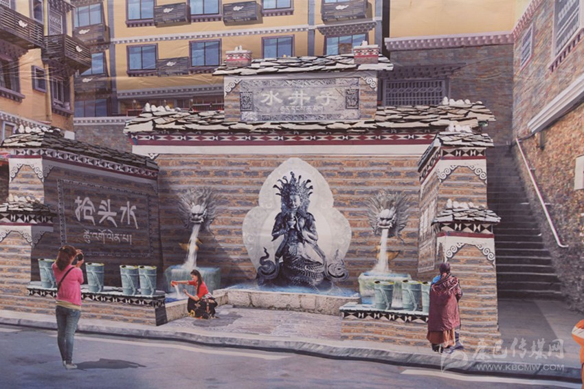 在現(xiàn)場(chǎng),“水井子”原址已被圍擋封閉施工。根據(jù)設(shè)計(jì),此次提升將融入“搶頭水”民族習(xí)俗,并結(jié)合互動(dòng)性祈福、見證愛情的表現(xiàn)手法旨在將水井子打造成為康定城中的體驗(yàn)式民俗景點(diǎn)。從外觀上看,內(nèi)街水井依然采用開放式外墻,正中神龕放置藏族水龍王塑像,兩邊塑造龍頭,以“二龍噴水”景觀作為新的出水方式,下方池邊則安放傳統(tǒng)背水姑娘雕塑。