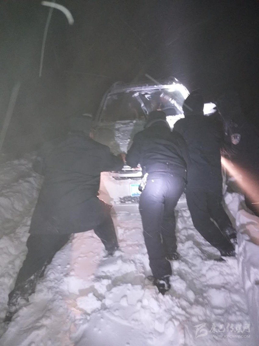 民警徒手刨雪 3次失敗后拖出被困車