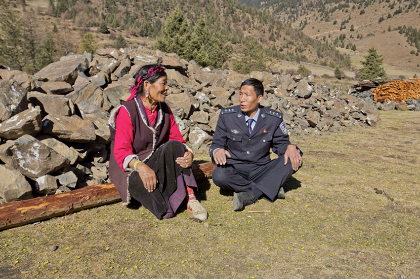 在設(shè)卡過程中,李降措逐一盤查經(jīng)過卡點(diǎn)的車輛和人員,一名村民舉報(bào)說,犯罪嫌疑人往塔公松林口方向逃竄了,并已經(jīng)上山。李降措迅即集結(jié)民警向嫌疑人逃竄方向追去,最終將嫌疑人鎖定在松林口附近的一座山上。