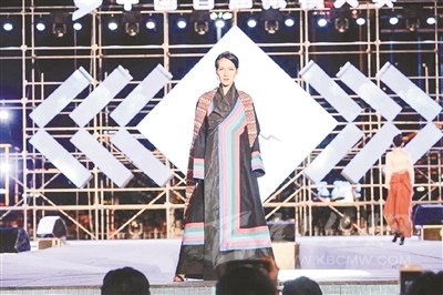 亞瑪措正在進(jìn)行T臺(tái)走秀。