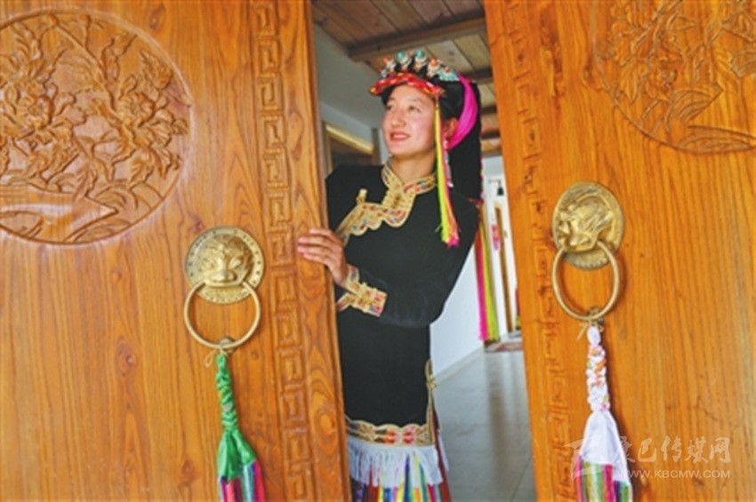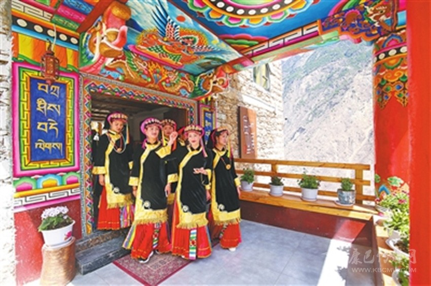 步入藏寨,藏式花紋的窗欞外懸掛著火紅的辣椒和金黃的玉米。朱紅色的大門(mén)上刻著藏式圖騰,客廳里色彩鮮艷、雕龍畫(huà)鳳的藏式餐桌上則擺滿了當(dāng)?shù)厥a(chǎn)的時(shí)令瓜果。室內(nèi)房間干凈整潔,有寬大的床鋪、客廳和洗手間,手捧香甜的酥油茶,倚窗而立,樹(shù)葉隨風(fēng)擺動(dòng),似乎在訴說(shuō)著少女心中對(duì)外面世界的向往。