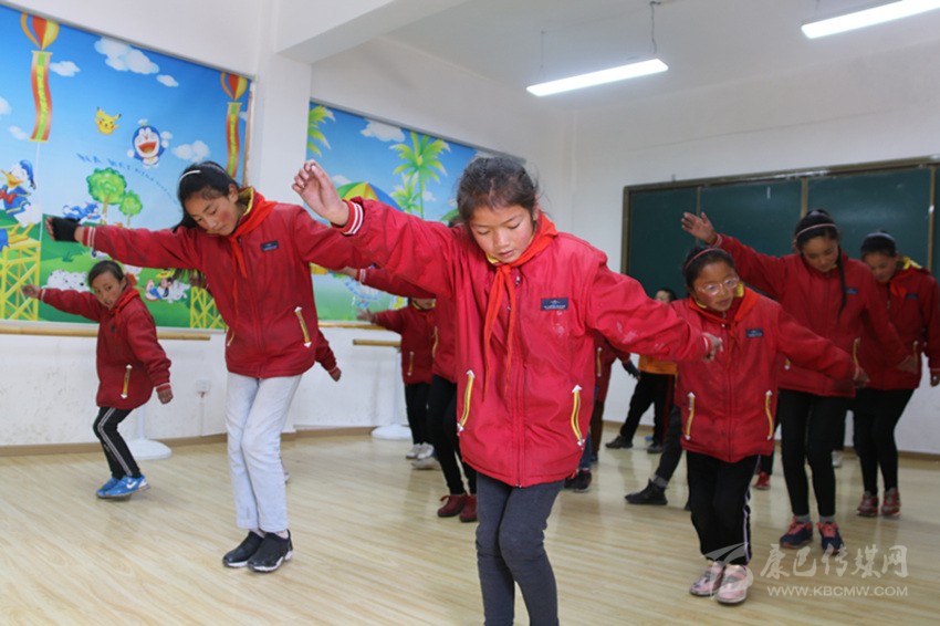 “要跟隨節(jié)拍,注意動作協(xié)調(diào)連貫,舞蹈是非常愉悅的享受,要面帶微笑,動作不要太僵硬?!痹谖璧甘?,老師正耐心地糾正孩子們的舞蹈動作。老師是縣文化館的專業(yè)演員,成為學(xué)校的舞蹈老師后,她就負(fù)責(zé)全校的舞蹈教學(xué)工作。