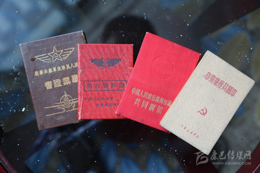 溫克棟的大兒子、57歲的溫樹(shù)平拿出大伯留下的遺物——一本中國(guó)人民解放軍航空學(xué)校畢業(yè)證書(shū)、一本中國(guó)人民解放軍空軍后勤部發(fā)的飛行裝具證、一本《中國(guó)共產(chǎn)黨黨章》、一本《中國(guó)人民政治協(xié)商會(huì)議共同綱領(lǐng)》,四本珍貴的文物書(shū)頁(yè)發(fā)黃,有的還有些微殘缺,但卻是珍貴的歷史見(jiàn)證物,溫家視為傳家寶。