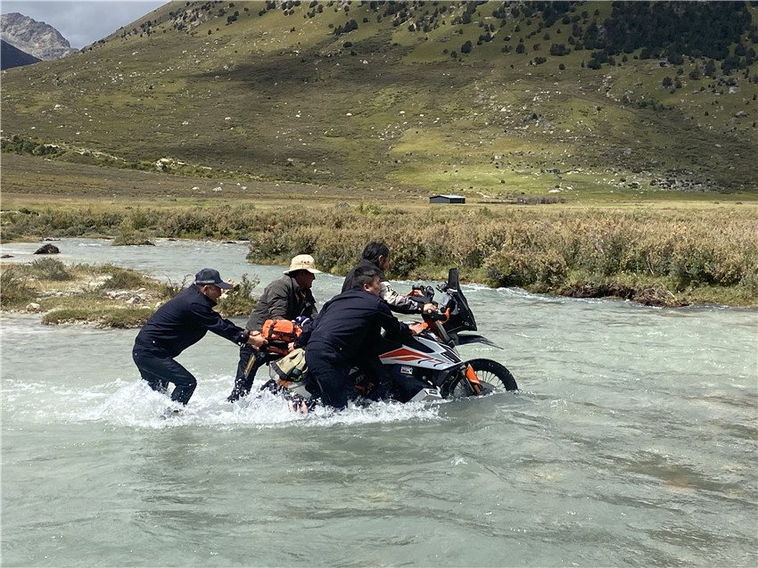 “電話接通的那一刻,我們真的是欣喜若狂!看到警車的那一瞬,我們的眼淚都要流出來了,真的太感謝他們了!”劉先生告訴記者,兩名警察在來救援的路上,一邊聯(lián)系了當地有摩托車救援經驗的牧民,一邊不停地打電話安撫他們緊張的情緒?!八麄儾蛔屛覀兿潞臃鲕?,說我們扛不住冰冷刺骨的河水,但他們自己卻毫不猶豫地跳下河幫我們推車。我們真的很感動,千言萬語都難以表達感激之情?!?/p>