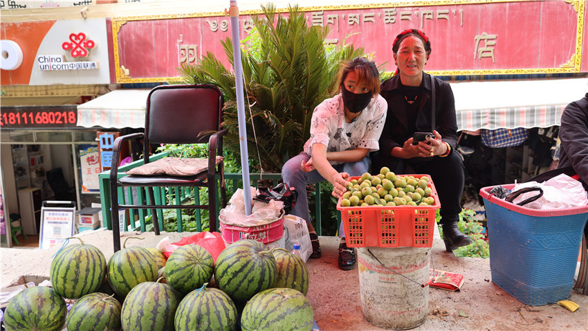 23個攤位是一個“展示廳”,為攤點(diǎn)商戶提供統(tǒng)一包裝盒、包裝袋,提升得榮農(nóng)特產(chǎn)品銷售品質(zhì),目前入駐群眾商戶年均增收達(dá)8000元。這種立竿見影的效應(yīng)活躍了得榮商貿(mào),為群眾增收提供了新模式。