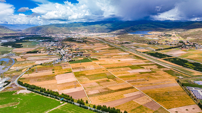 本網(wǎng)訊 今年以來(lái),甘孜州緊抓糧食安全穩(wěn)“糧”心,認(rèn)真落實(shí)糧食安全黨政同責(zé),全力抓好各項(xiàng)關(guān)鍵措施落實(shí),積極抓實(shí)糧食生產(chǎn),大力發(fā)展青稞種植,全力以赴打造“高原糧倉(cāng)”。進(jìn)入甘孜州后,沿G350國(guó)道經(jīng)道孚縣、爐霍縣,再沿G317國(guó)道至甘孜縣,這一帶盛產(chǎn)青稞、小麥、油菜籽等農(nóng)作物,是川西傳統(tǒng)農(nóng)耕區(qū)域。不同農(nóng)作物呈現(xiàn)出金黃、橙黃、青黃等不同色彩,從高空俯瞰猶如斑斕的“大地調(diào)色盤”,美不勝收。 洛絨尼瑪 攝影報(bào)道
