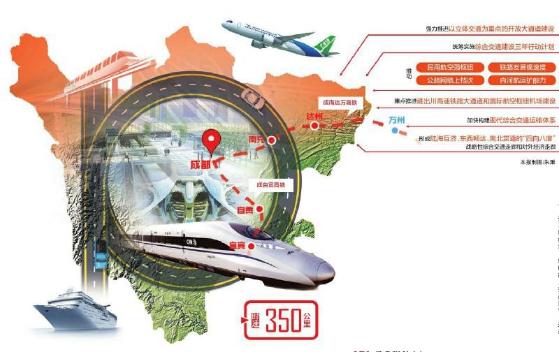 對內(nèi),有助于支撐我省“一干多支”“五區(qū)協(xié)同”發(fā)展戰(zhàn)略。西南交大黨委副書記晏啟鵬認(rèn)為,四川空、公、水運已有一定基礎(chǔ),發(fā)展態(tài)勢清晰,再新增受惠面大、參與度廣的兩條高速鐵路建設(shè),能使成都和川南經(jīng)濟區(qū)、川東北經(jīng)濟區(qū)實現(xiàn)1小時左右交通互聯(lián),不同城市將連點成面。