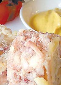 彝族風(fēng)味肉凍,這是彝族地區(qū)較為講究的一種菜肴。它采用豬蹄和肘子制做而成。一般做法是將肉放入鍋內(nèi)煮軟后撈起,剔去骨頭并將肉宰碎,放上木姜、生姜、花椒等佐料,有的還放橘子皮,或雞蛋之類(lèi)的東西,然后放回鍋里煮上一陣,以便使佐料滲入肉中,最后放入木缽內(nèi),放上一夜即成。肉凍柔軟可口,香味獨(dú)特,是彝族十分喜愛(ài)的一種食品。