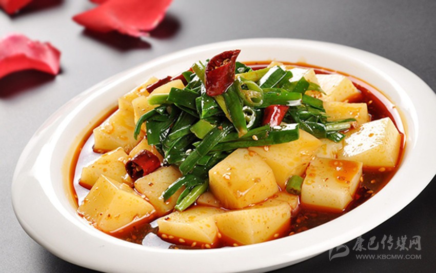 3、攪團:將清水在鍋內(nèi)燒開后,逐量撒入極細(xì)的玉米面粉,以當(dāng)年新產(chǎn)的小金黃玉米粉為佳,用竹筷攪拌,此時灶中火要猛,直到攪成糊狀,然后蒙蓋一層新鮮潔凈的芭蕉葉或青菜葉,再蓋上鍋蓋文火蒸20—30分鐘,用大碗盛起;鍋內(nèi)打油湯,燒煮酸油菜湯,其油鹽調(diào)料如一般湯羹(酸油菜即以野生油菜莖葉,洗凈,在開水鍋內(nèi)略煮一下,即撈起置于木盆或瓷盆內(nèi),趁熱壓緊覆蓋閉氣,隔夜后即成一種酸味菜,可炒食,亦可煮湯食,其味略酸而鮮美爽口,并有一種特殊香味,本地人歷來皆愛食之。